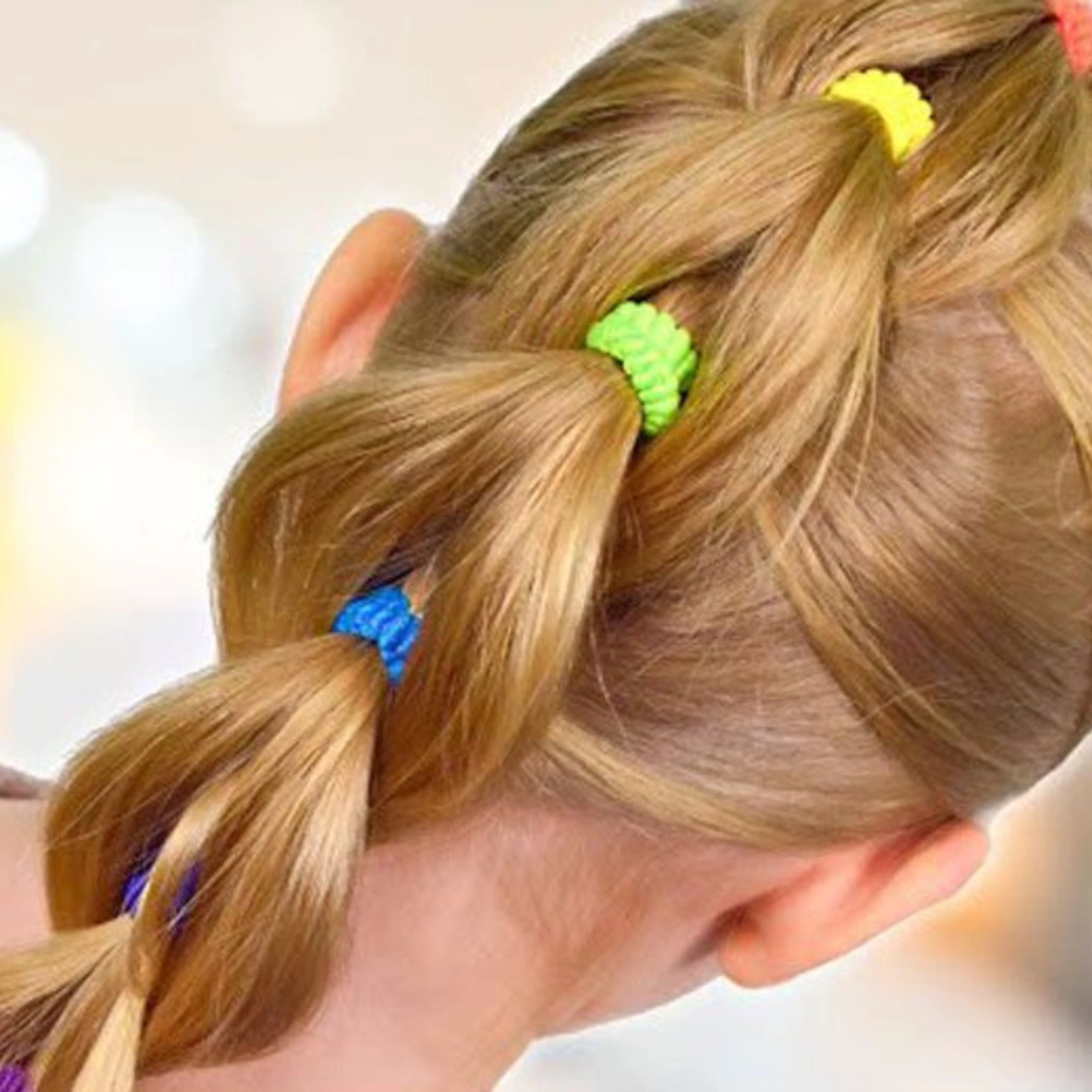 Kit com 30 mini elásticos de cabelos em cores sortidas.
