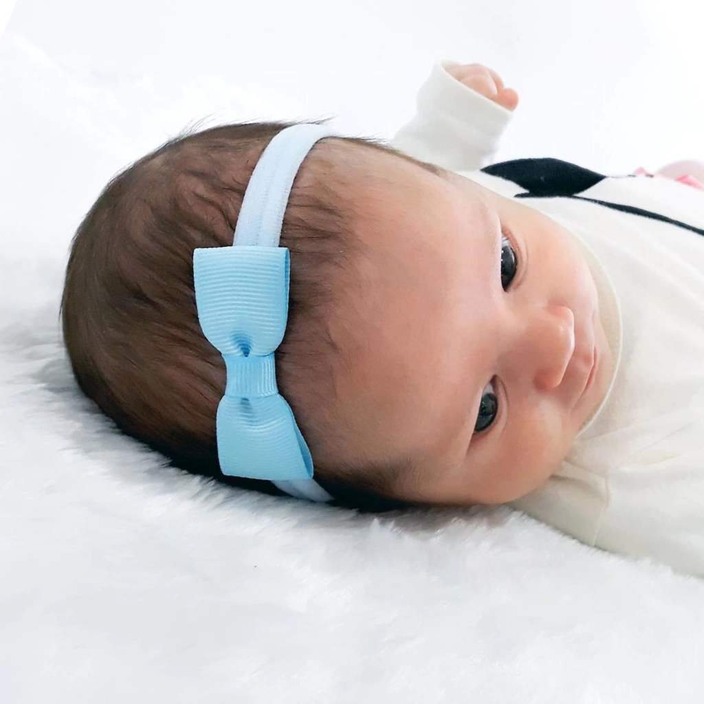 Faixa de bebê com laço tamanho P. A Faixa Olívia é vendida em Kit com 6 cores.