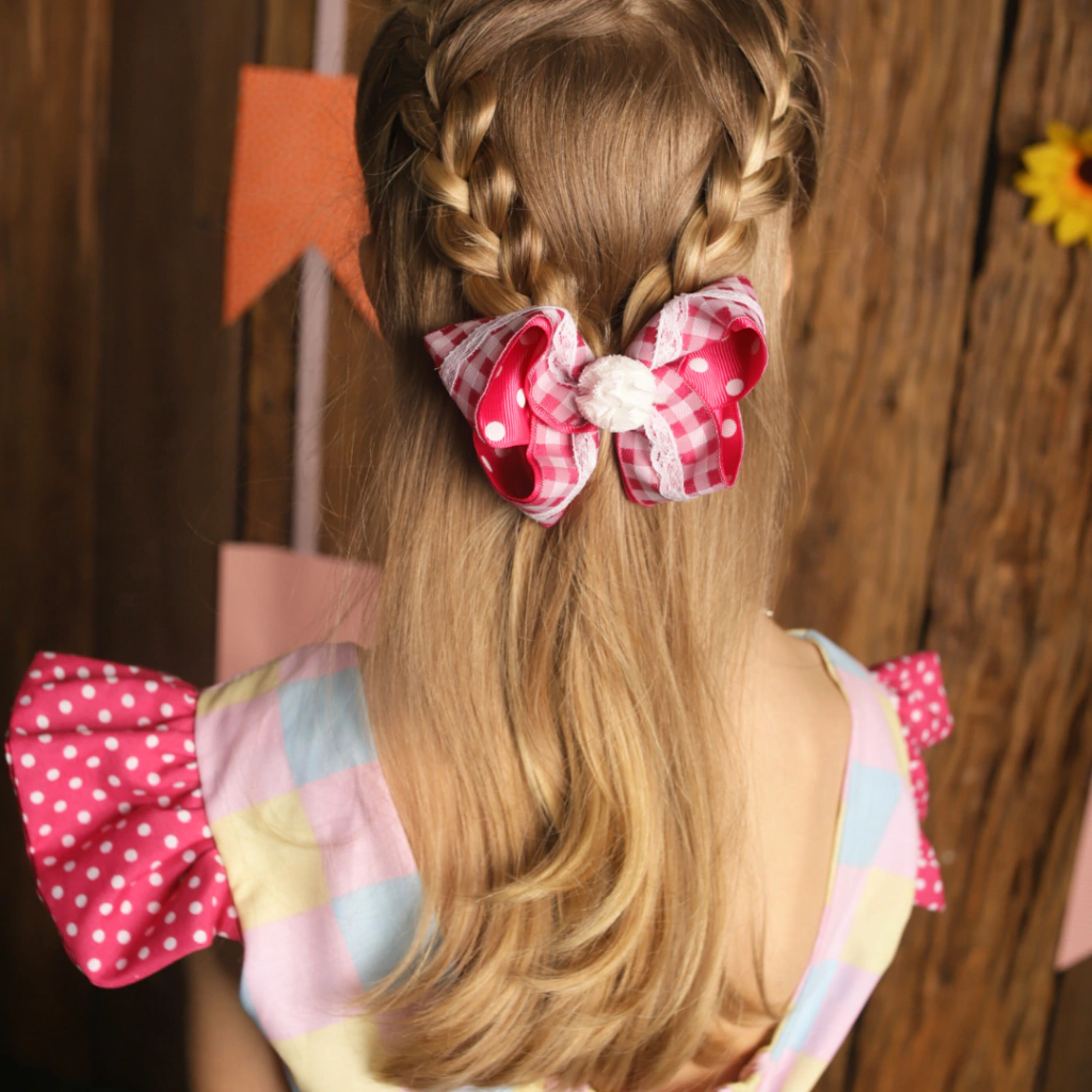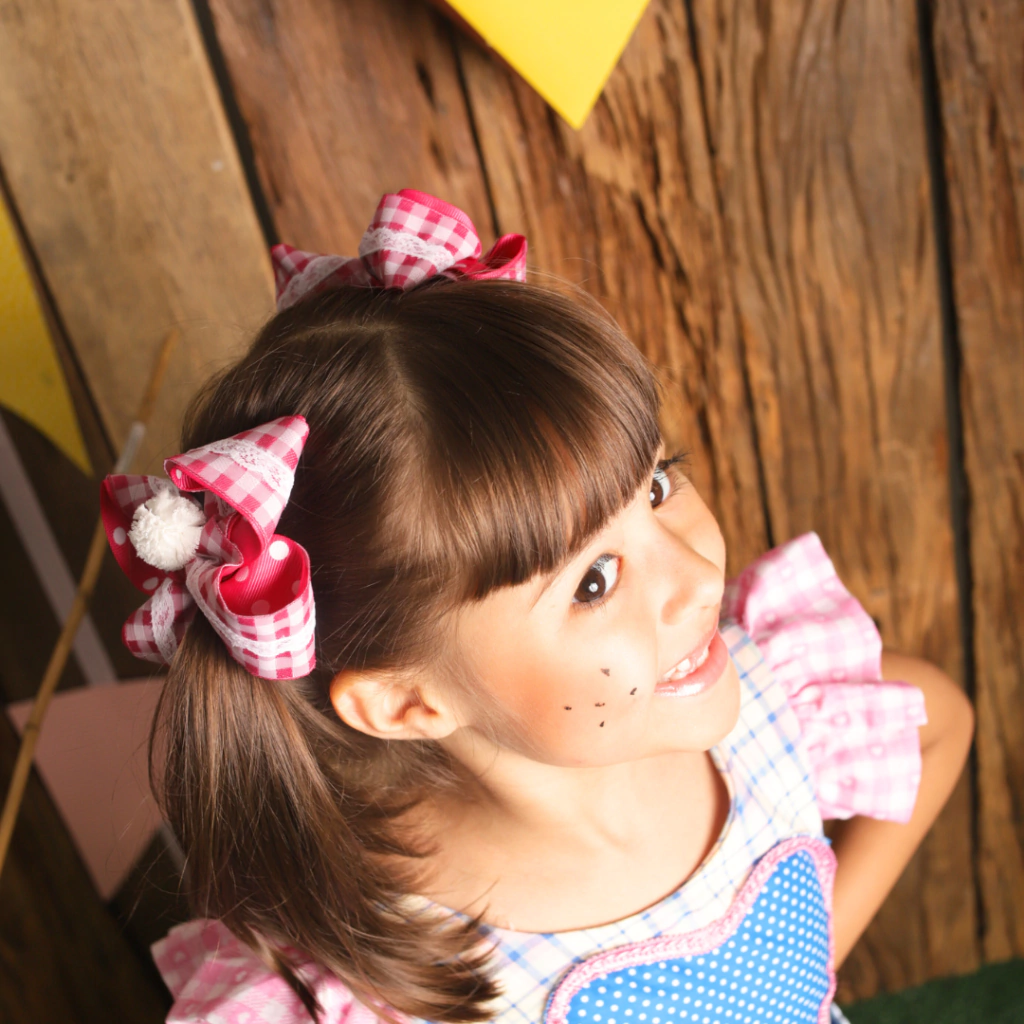3. Versatilidade: O "Charme Xadrez" pode ser facilmente incorporado em diversos penteados, como rabos de cavalo, coques e tranças, garantindo um visual encantador em qualquer ocasião - desde festas de aniversário até eventos especiais em família.