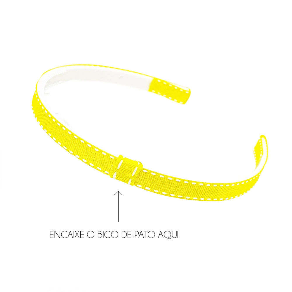 Tiara feita em plastico e fita em gorgurão pespontada.